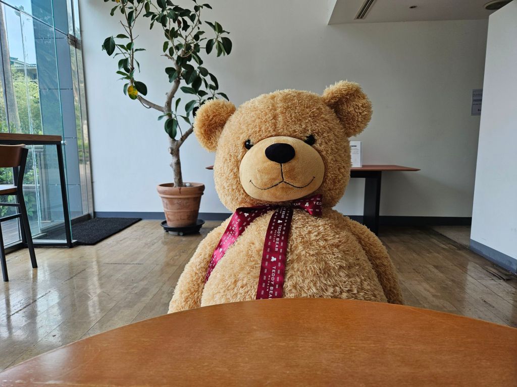 The cafe was also delightfully mental. It had company for solo diners (which we all know they hate intensely here in South Korea) just so you didn’t look like the lonely loser you are…. in the form of giant bears to sit at the table with you.