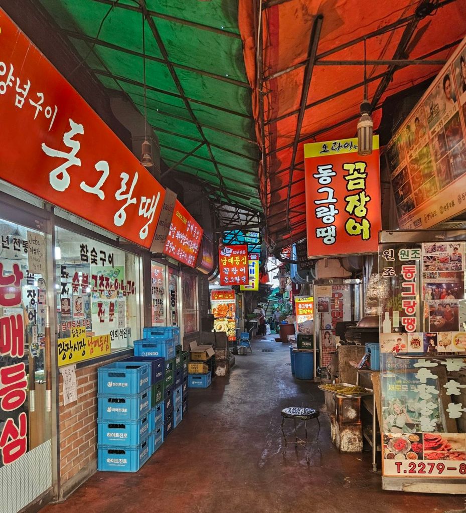 Lunch was courtesy of Gwangjang market, the iconically famous food market here in Seoul. Whilst much smaller than I envisaged, arriving at 2.30 meant the rush had died down, and navigating the alleys and stalls was a breeze.