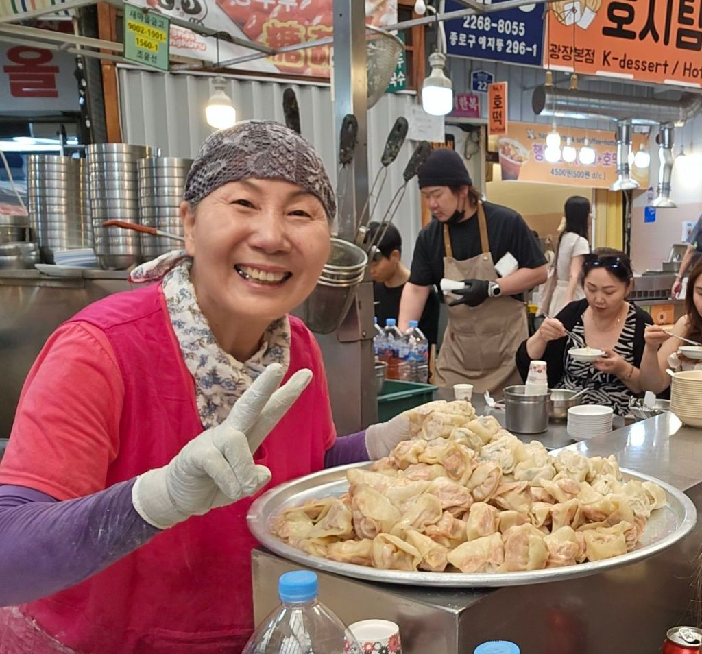 Closest to a Korean celeb spot on this leg was Cho Yongsoon and her stall in the market selling Kalguksu soup and mandau dumplings. Having been featured in an iconic episode of Netflix series Street Food Asia, her place is always busy, but I managed to grab a coveted spot in front of her station to watch her mastery at work. She was utterly gorgeous, rolling all the noodles as we ate by hand. Super cute and sent her love back to London.